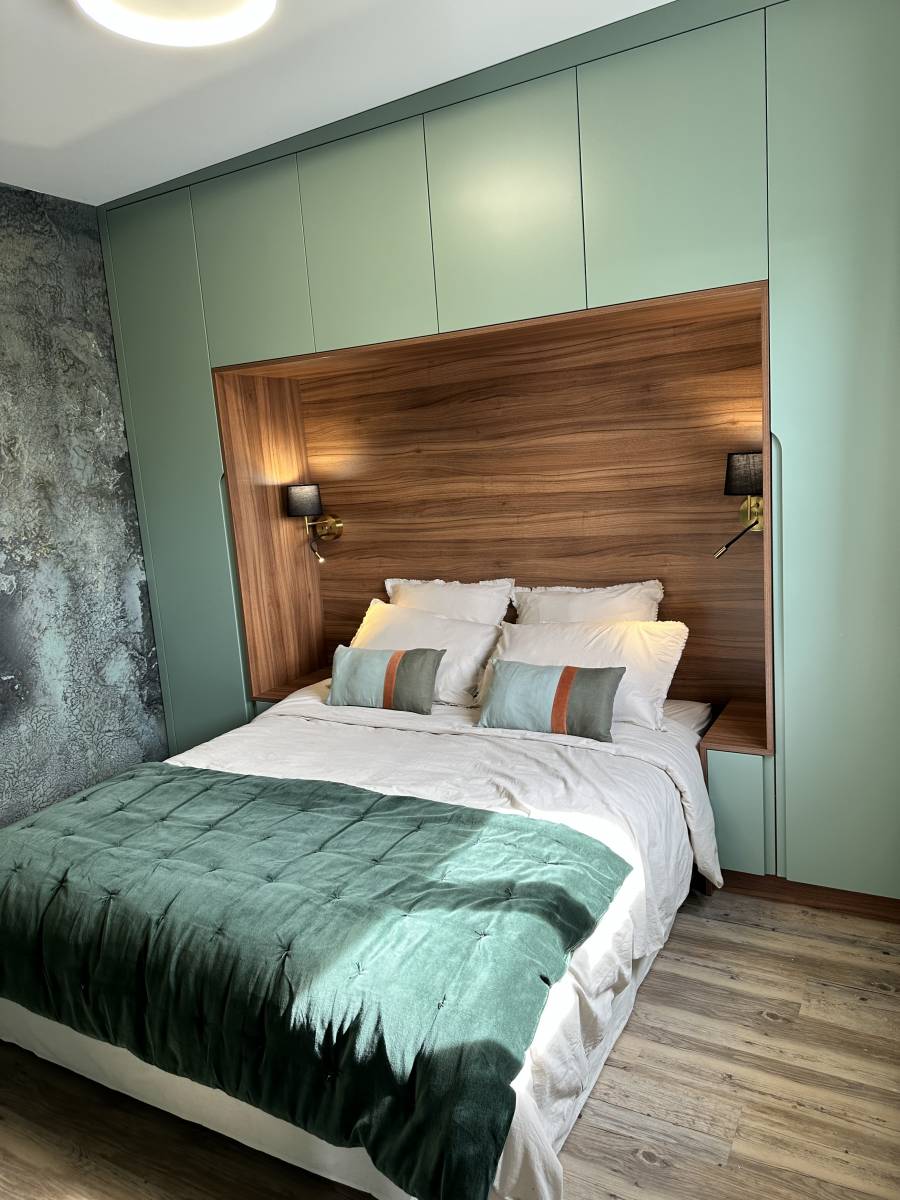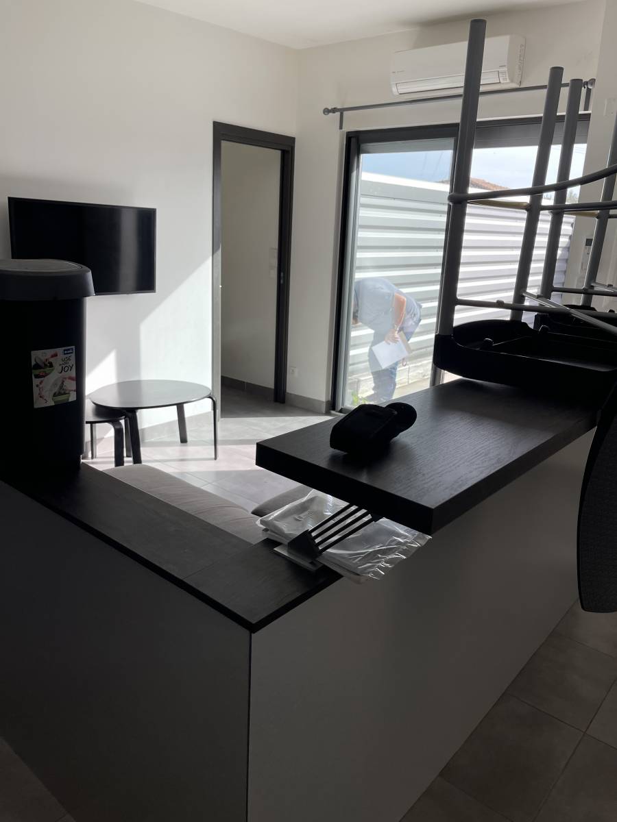 Nous avons transformés un appart hôtel en un lieu élégant et fonctionnel grâce à notre équipe de peintre pour effectuer la peinture et la pose du papier peint, de menuisier en réalisant un meuble sur mesure, de l'électricien pour effectuer les modifications électriques. La société EGSO a également aménagé l'extérieur, décoration et mobilier.