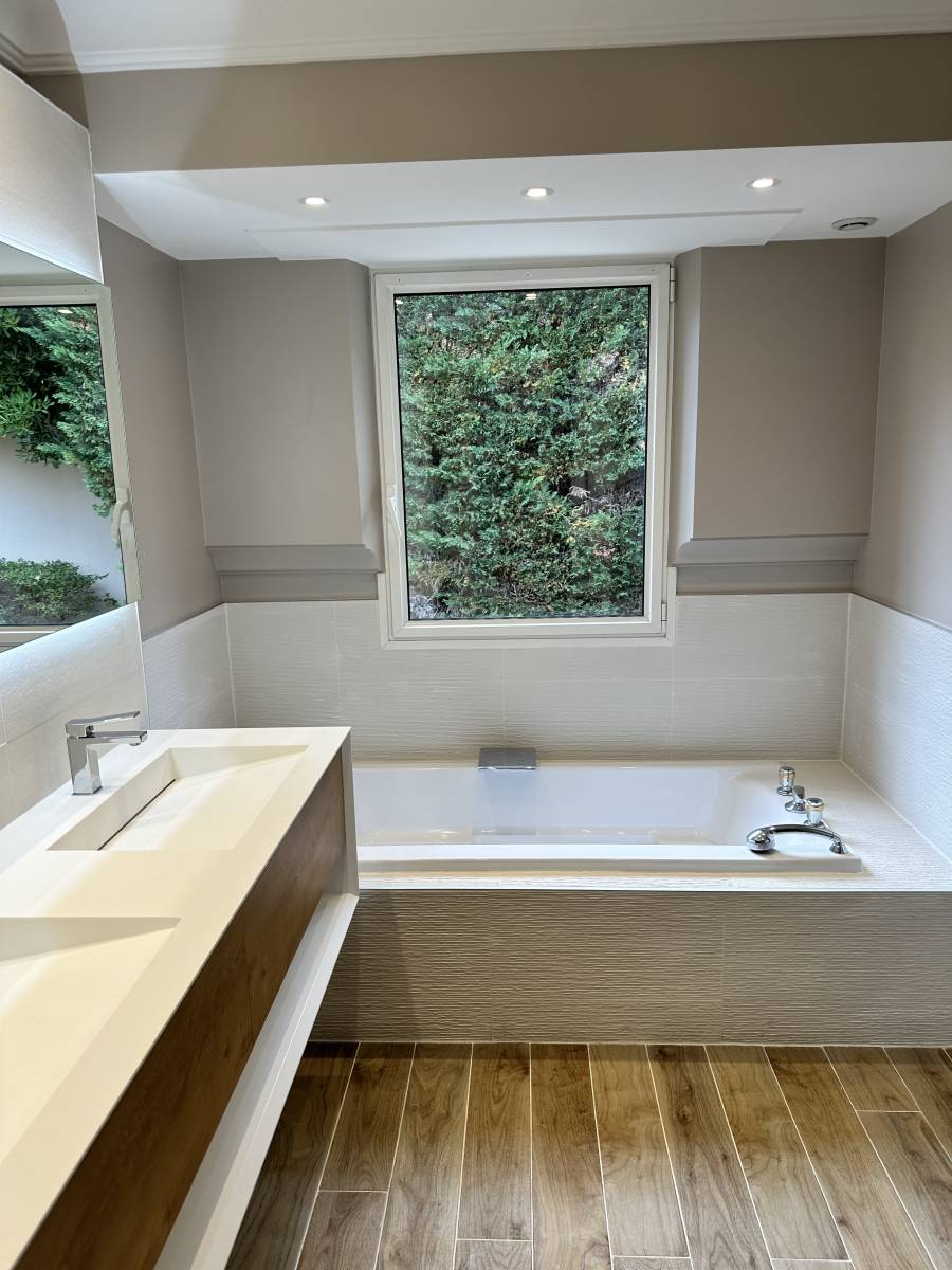 Les travaux ont été effectués dans les différentes pièces de la villa tel que les chambres avec leurs salles de bains, dans la buanderie, dans la cuisine, dans le séjour, dans la salle à manger, dans l’escalier ainsi que dans les couloirs.